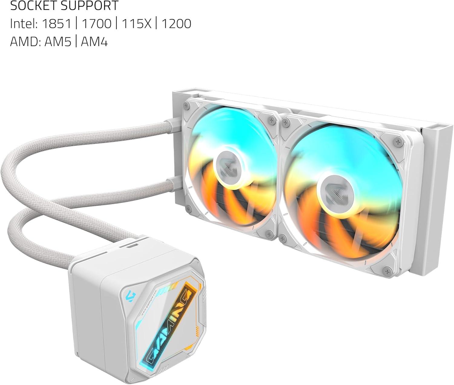 GIGABYTE Gaming 240 ICE Liquid CPU Cooler, 240mm Radiator with 2X 120mm Low Noise ARGB Fans, Compatible with Intel LGA 1851, 1700, 115X, 1200, and AMD AM5, AM4 (GIGABYTE Gaming 240 ICE)