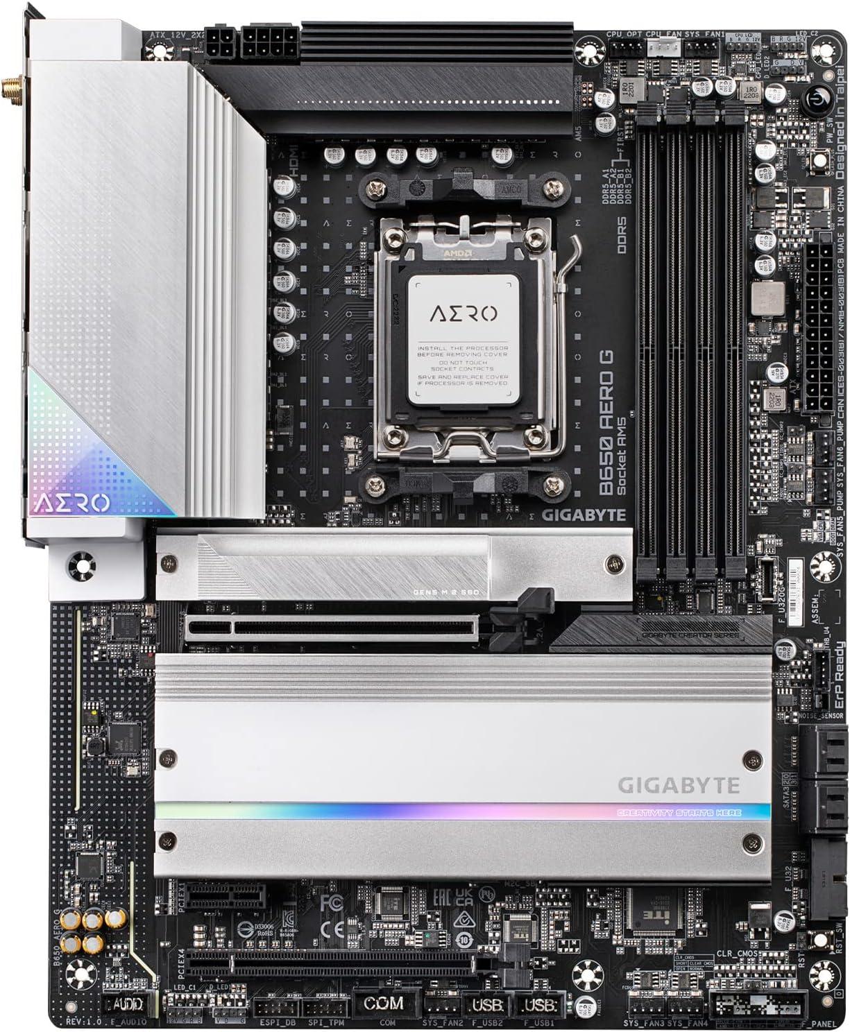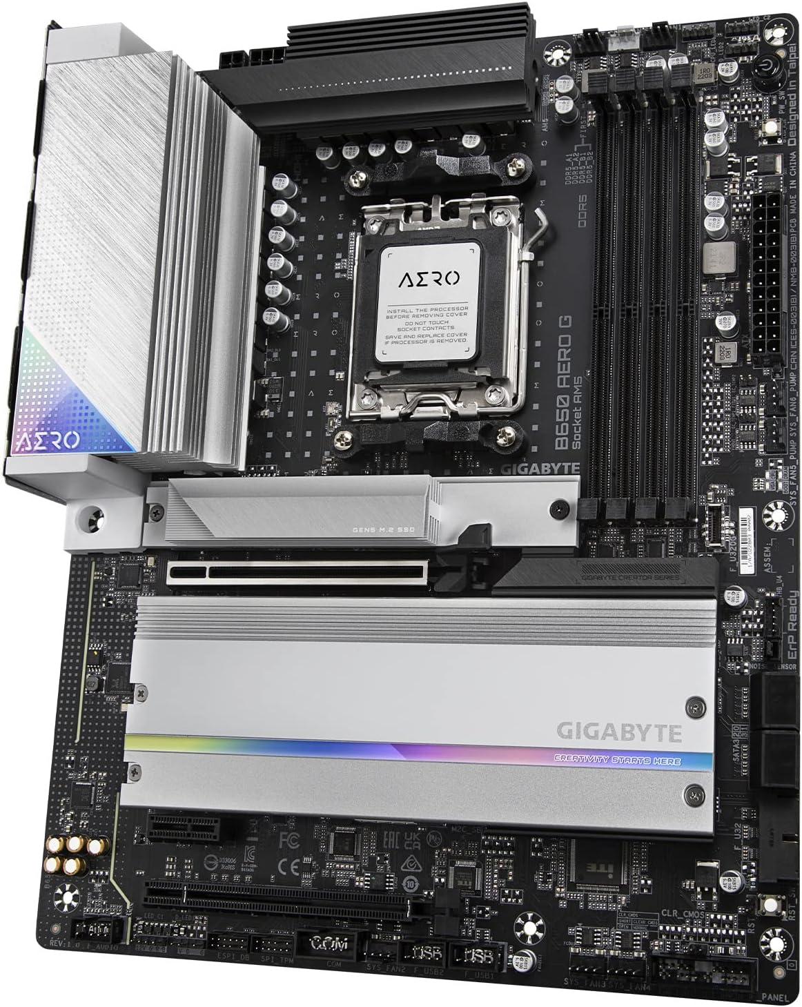GIGABYTE B650 AERO G (AM5/ LGA 1718/AMD B650/ ATX/ 5-Year Warranty/DDR5/PCIe 5.0 M.2/PCIe 5.0/USB 3.2 Gen2X2 Type-C/Wi-Fi 6E/Intel 2.5GbE LAN/Motherboard)