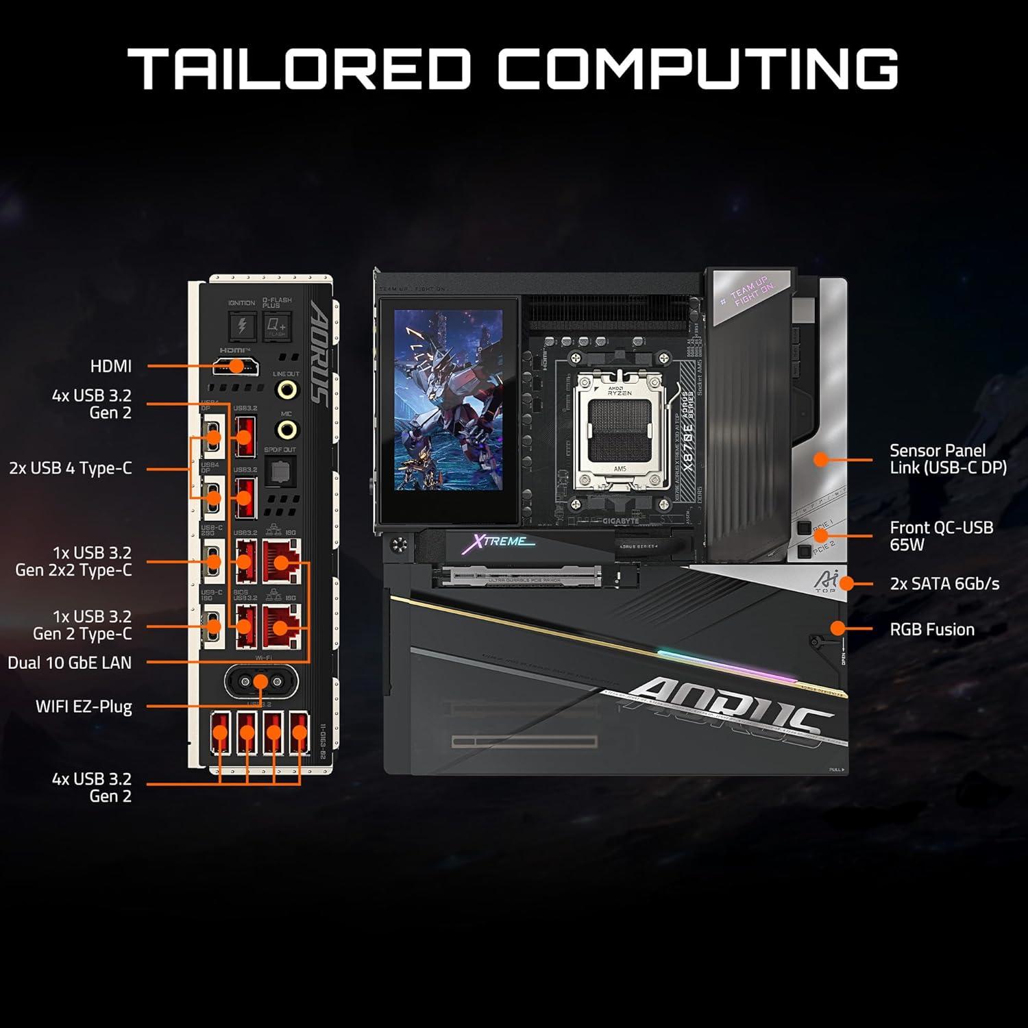 GIGABYTE X870E AORUS Xtreme X3D AI TOP AMD AM5, E-ATX, Supports AMD Ryzen 9000/8000/7000 Series Processors, DDR5, 24+2+2 Total Power Phase, 5X M.2, PCIe 5.0, USB4 Type-C, WIFI7, 5-Year Warranty
