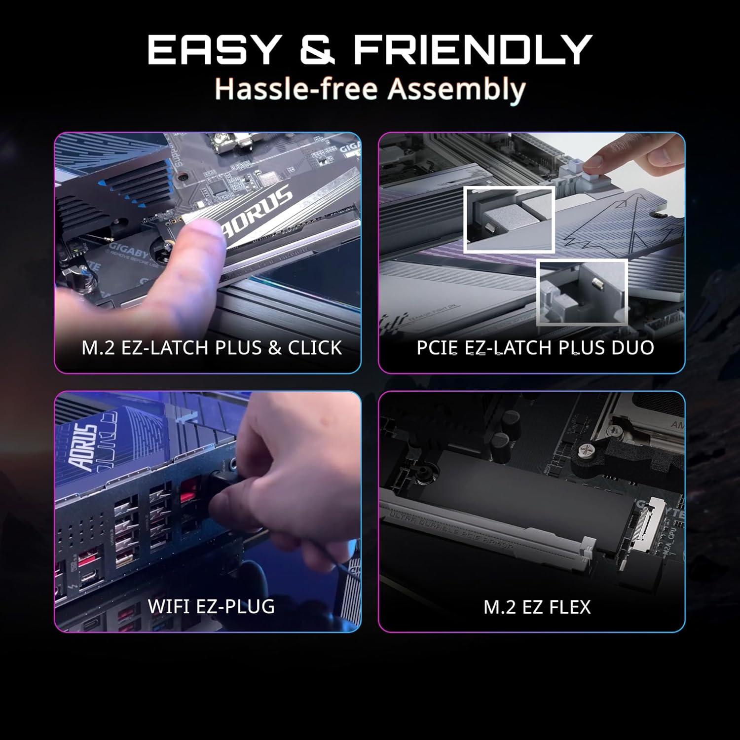 GIGABYTE X670E AORUS PRO X (AM5/ LGA 1718/ AMD/ X670E/ EATX/ 5-Year Warranty/ DDR5/ Quad M.2/ PCIe 5.0/ USB 3.2 Gen2X2 Type-C/WiFi 7/ Intel 2.5GbE LAN/Q-Flash Plus/EZ-Latch Plus/Motherboard)(ATX)