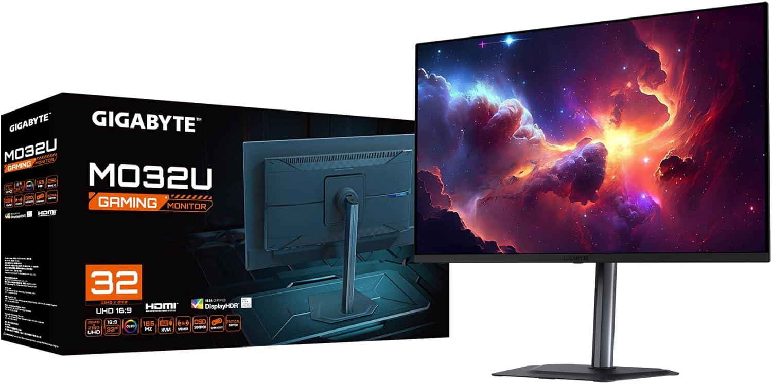 GIGABYTE – MO32U – 32″ QD-OLED Gaming Monitor – UHD 3840×2160-165Hz – 0.03ms GTG – AMD FreeSync Premium Pro – Type C KVM – HDMI, DP – Height Adjustable – Black