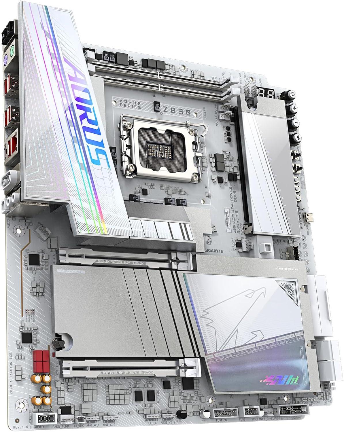 • GIGABYTE Z890 AORUS Tachyon ICE Intel Core Ultra (Series 2) LGA 1851 Motherboard, E-ATX, DDR5, 4X M.2, PCIe 5.0, Thunderbolt 4, WIFI7, 5GbE LAN, D5 Bionic Corsa
